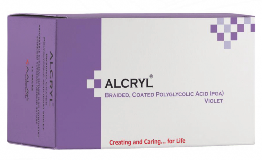 Made up of braided and coated 100% Polyglycolic acid, ALCRYL® holds through critical wound healing period, then is rapidly absorbed. It is ideal for use in general closure, gastro-intestinal, ob-gyn, orthopaedics where eventual absorption of suture is required.