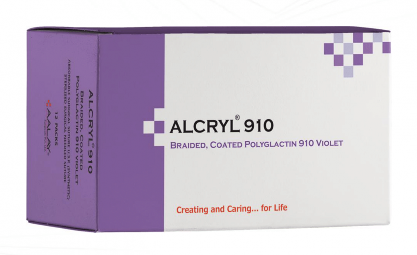 ALCRYL® 910 is a well-known combination of 90% Polyglycolic Acid and 10% Lactic Acid. It is ideal for general closure, gastro-intestinal, ob-gyn, orthopaedics where eventual absorption of suture is required. Undyed form is specially for cuticular and plastic surgeries.