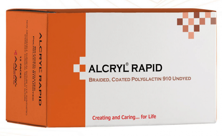 ALCRYL® RAPID is recommended when faster absorption is desired. The higher homopolymer of Glycolide, is reduced to simpler polymer of glycolide to get it absorbed rapidly. It is ideal for use in oral and scalp wounds, episiotomy surgery, closure of laceration under cast etc.